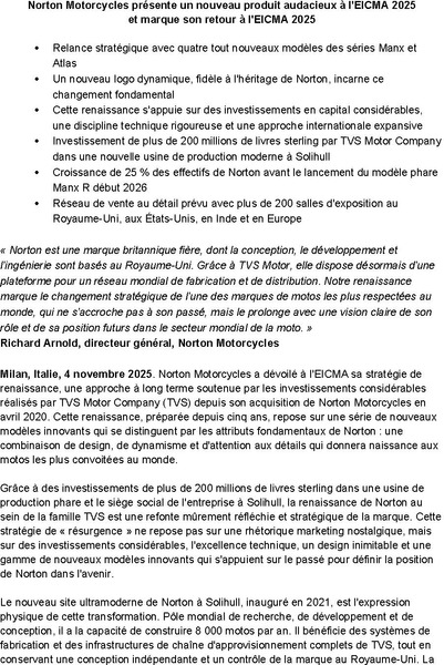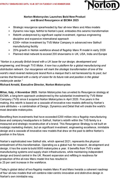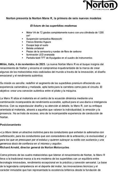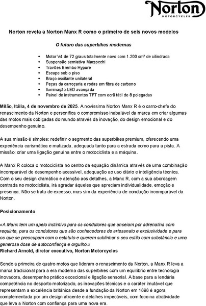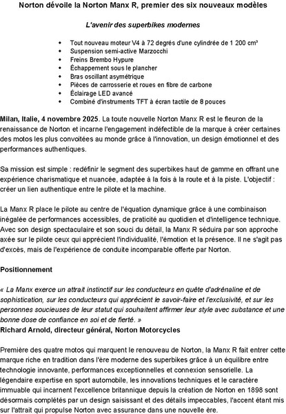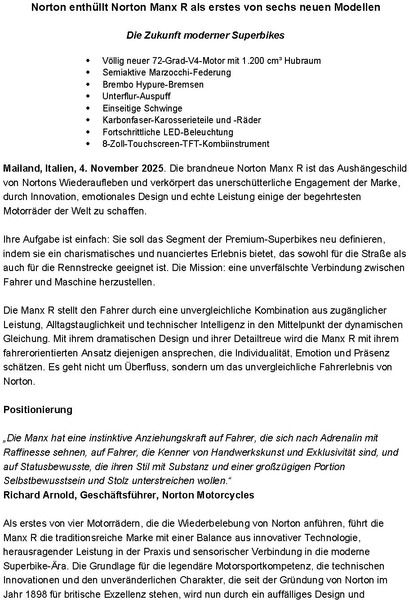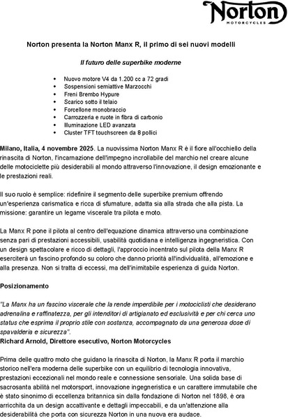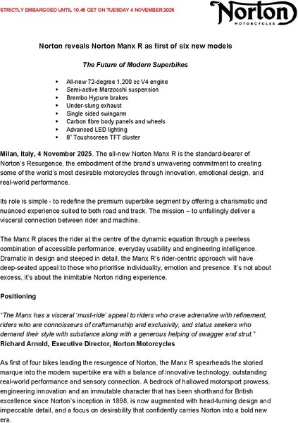 Milan, Italy, 4 November 2025. The all-new Norton Manx R is the standard-bearer of Norton’s Resurgence, the embodiment of the brand’s unwavering commitment to creating some of the world’s most desirable motorcycles through innovation, emotional design, and real-world performance.